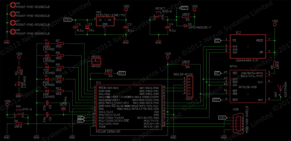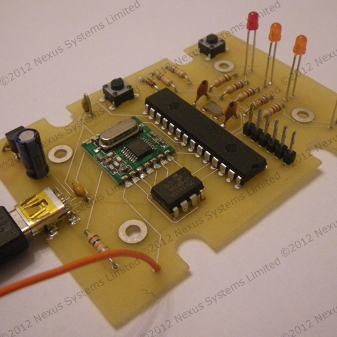 The RFM12BUIM02 is a simple yet powerful USB interface to the RFM12B versatile radio module from HopeRF. The firmware on the module allows the user to select from a range of packet formats (data length, node ID, CRC length etc) with minimal configuration. It also has onboard flash storage to buffer inbound data until it is retreived by the USB host computer.
